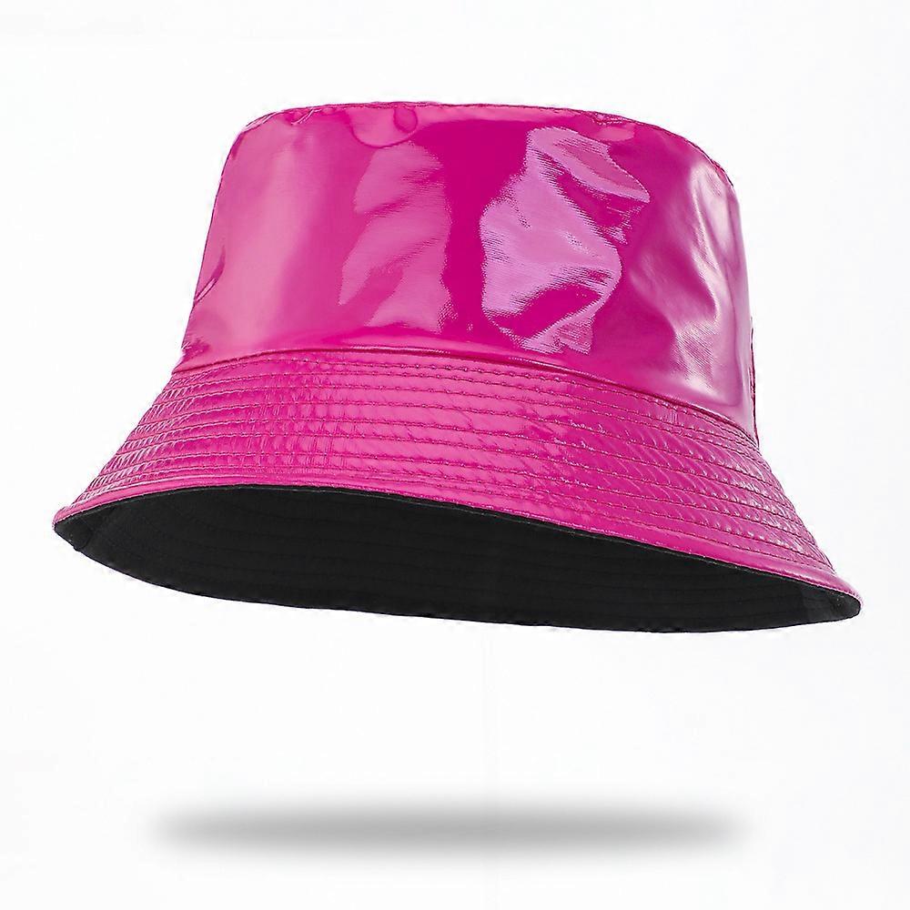Faux Leather Bucket Hat Women Reversible PU Leather Sun Hat Fashion Autumn Waterproof Fisherman Hat Reversible Sun Bucket Hat