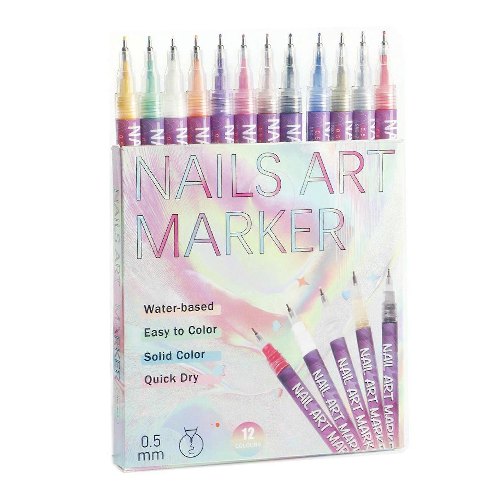 12-Color Nail Doodle Pen Set Nail Art Paint Pens Fine Tip Nail Doodle Pens Quick-drying for Dotting Drawing Painting Point Liner