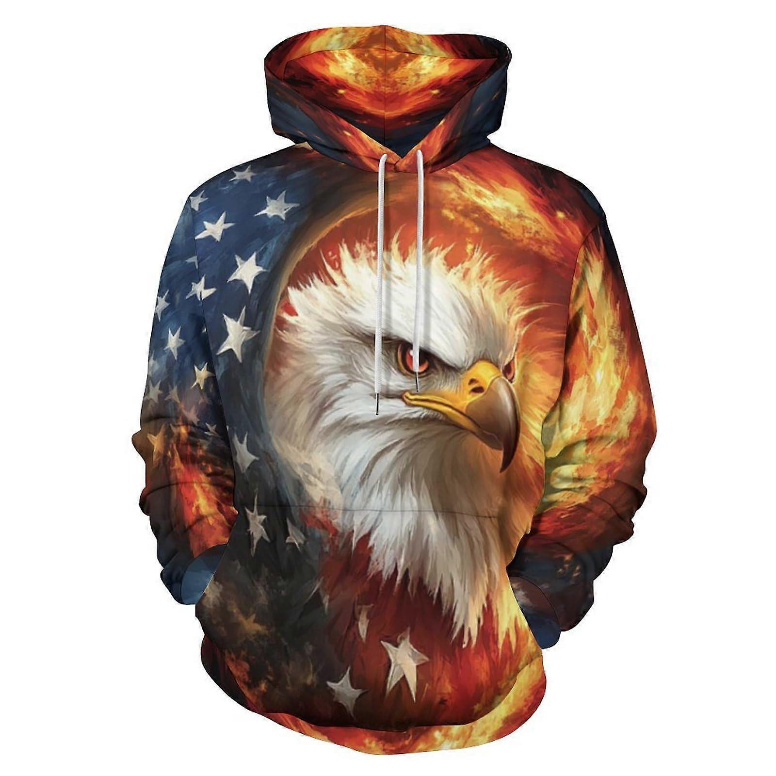 Men's Eagle And Star Graphic Hoodie Dramatic Art Print Pullover Bold Casual Top