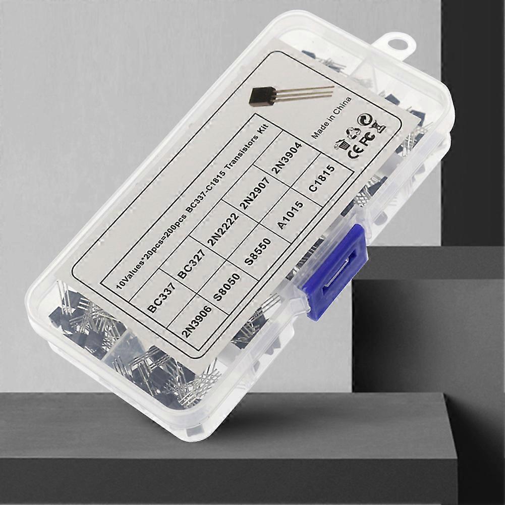 200PCS Transistor Kit Assortment Box 10 Values TO-92 2N2222 2N2907 2N3904 2N3906 S8050 S8550 A1015 C1815
