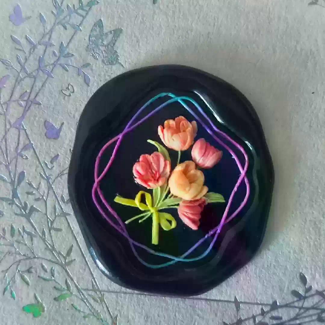 Fire lacquer seal, bow, flower sea, multi-layer relief, koi fish, finely carved copper head, DIY floral border, stamp toy, seal