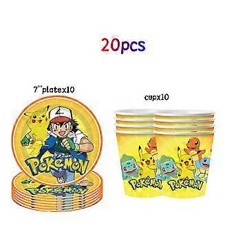 Pokemon Birthday Party Set Decoration Supplies Disposable Tableware Pokemon Tablecloth Cup Plate Baby Shower Pikachu Party Favor
