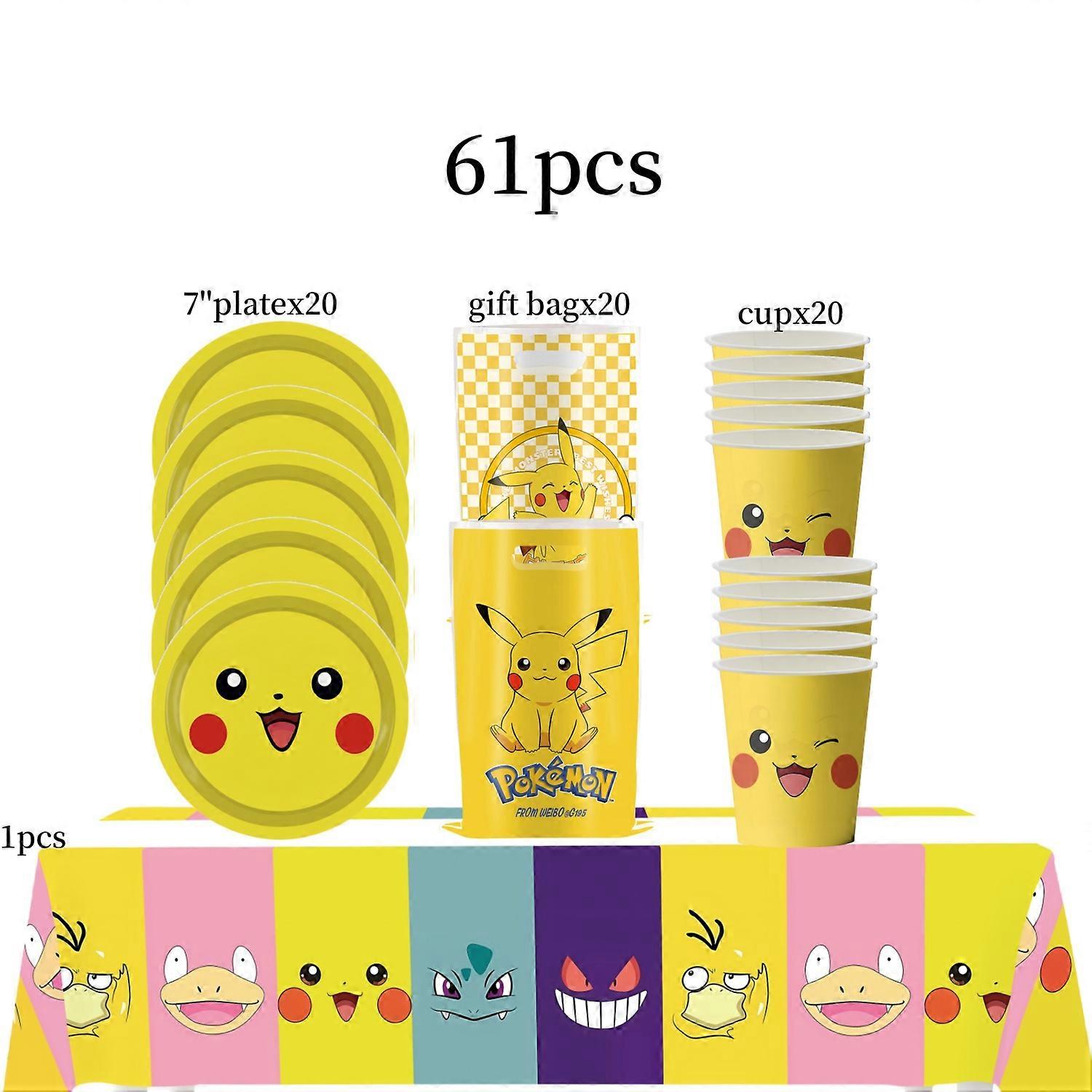Pokemon Birthday Decoration Kit Party Decoration Pikachu Dish Tablecloth Cup Plate Napkin Balloons Gift Bag Pikachu Party Favors