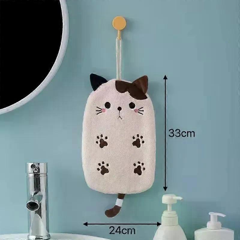1 Pcs Super Absorbent Hanging Type Cat Embroidered Towelette Home Decor Dual Purpose Coral Velvet Hand Towel Bathroom Supplies