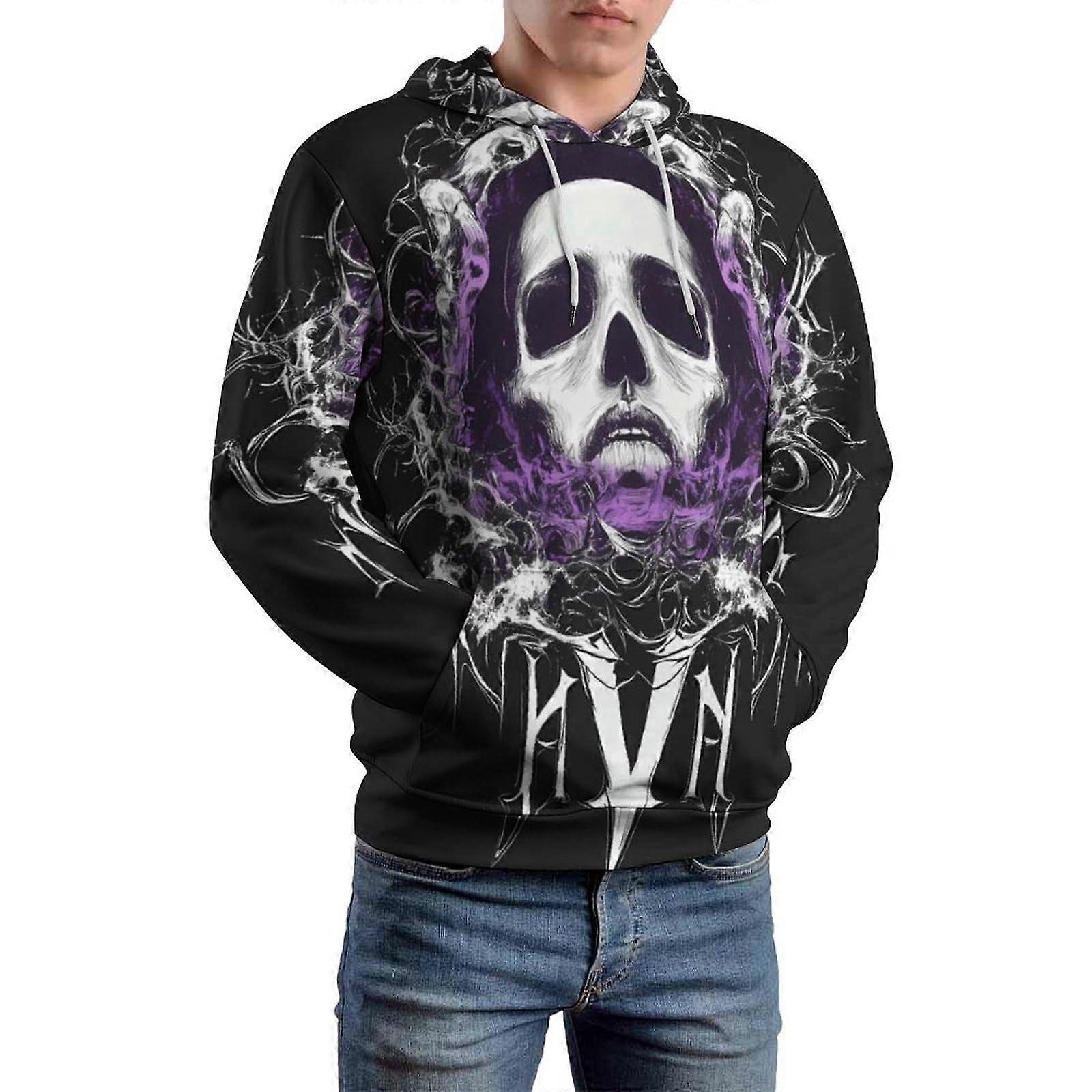 Men's Purple Skull Graphic Hoodie Edgy Art Print Pullover Statement Casual Top