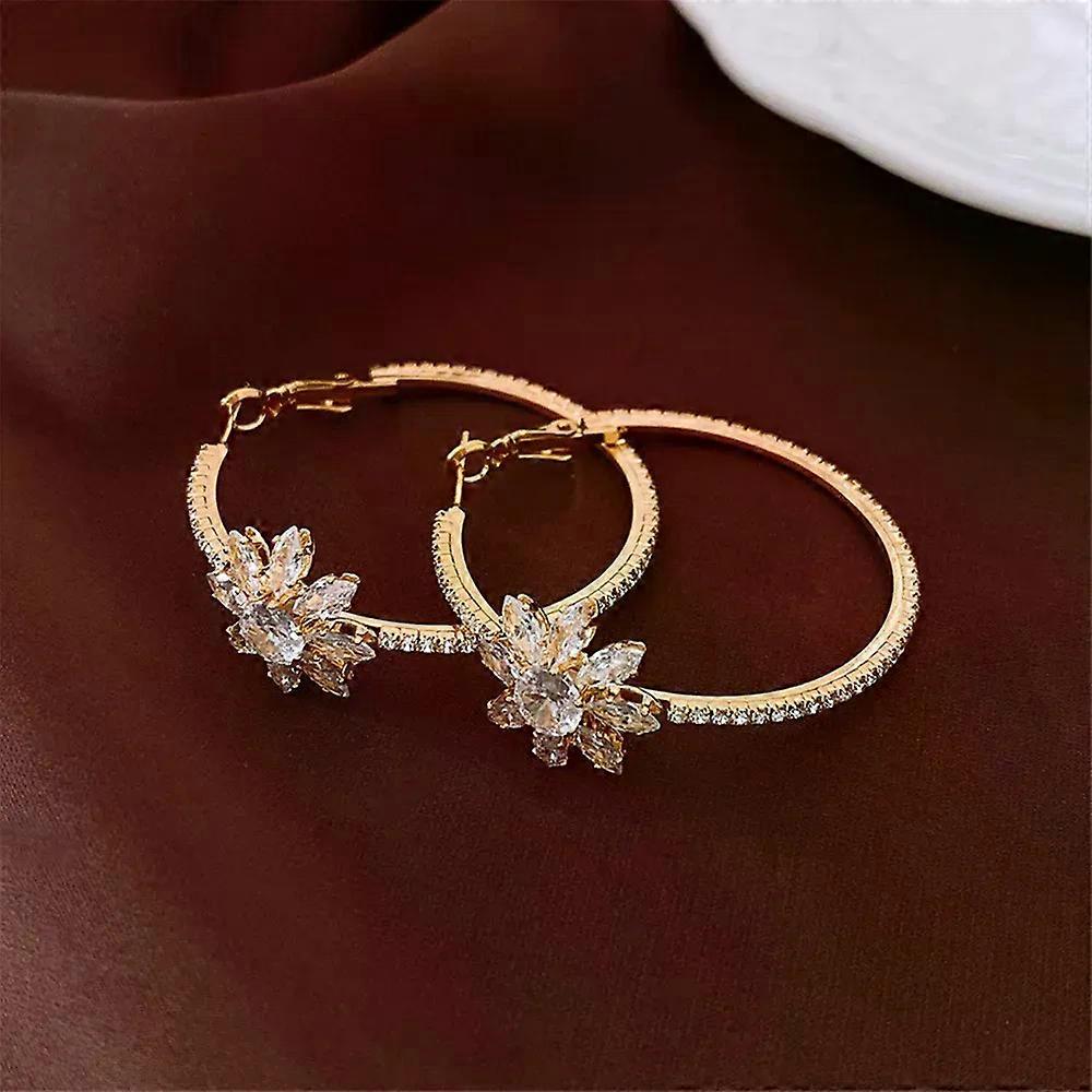 Luxury Female White Zircon Stone Hoop Earrings Vintage Fashion Gold Color Wedding Jewelry For Women