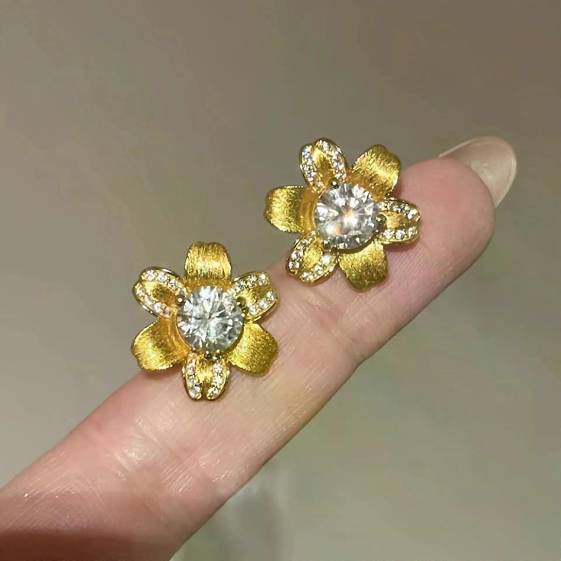 French Style Retro Jewelry Flower Design Gold Color Pendant Necklaces Inlaid Zircon Stud Earrings Jewelry Sets For Women