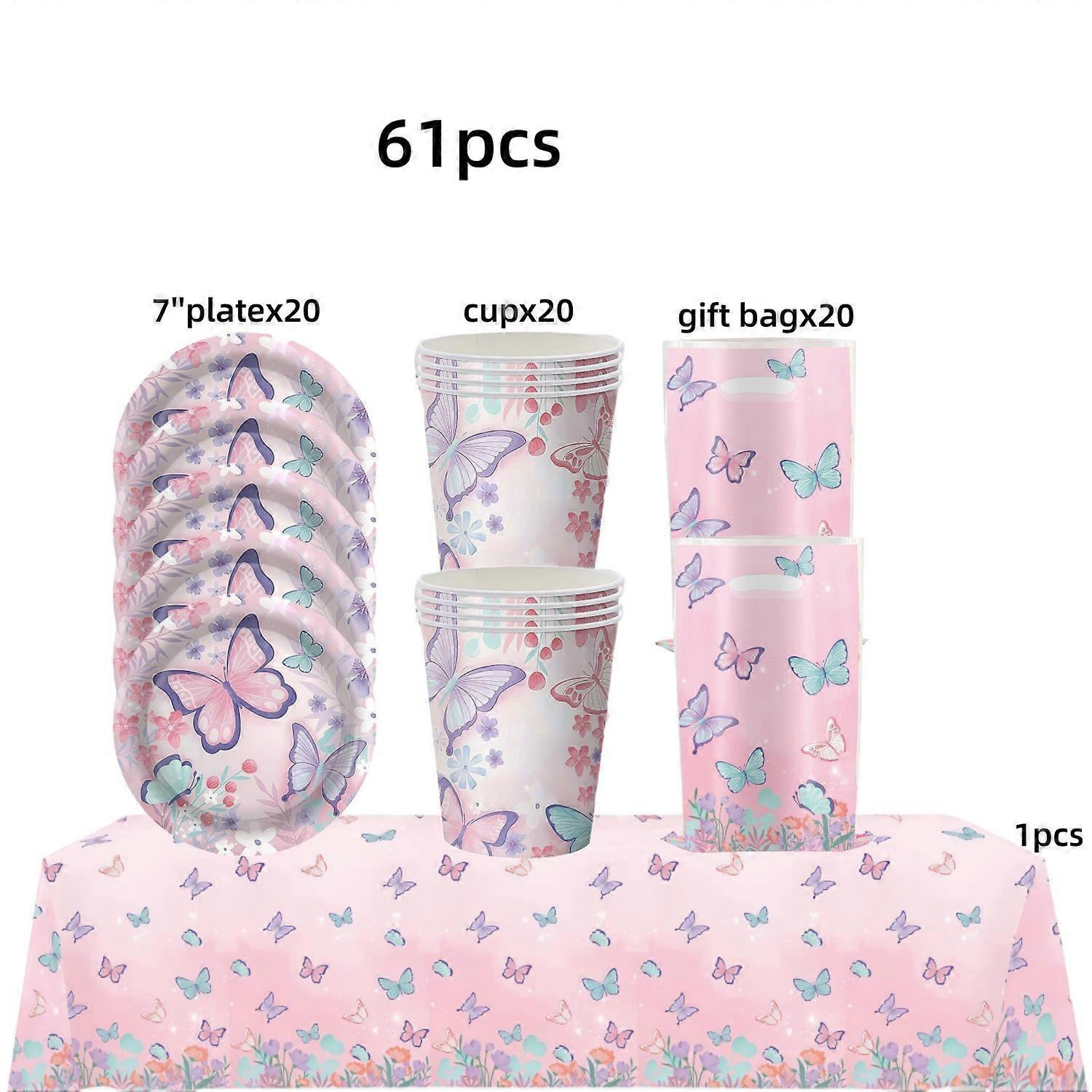Purple Butterfly Party Decorations Set Disposable Tableware Tablecloth Plate Cup Napkin Bags Baby Shower Butterfly Party Favors