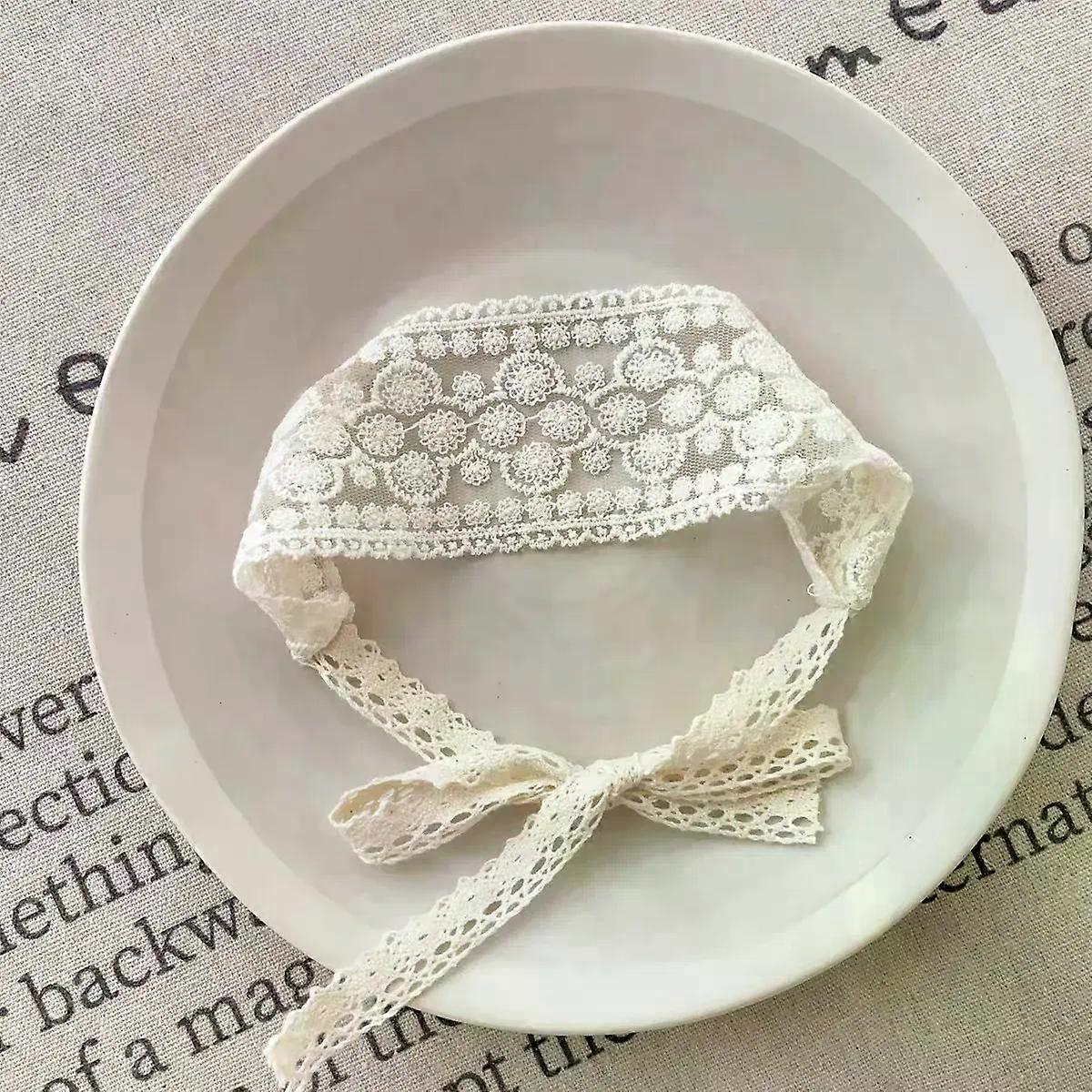 Girl Lace Headband Newborn Princess Elastic Hair Bands Retro White Flower Bow Turban Hair Accessories for Girls