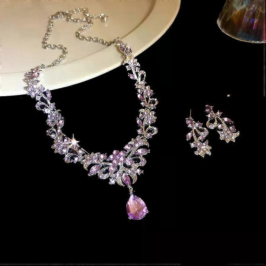 2 Pcs Inlaid Rhinestone Leaves and Flowers Jewelry Sets for Women 2025 New Luxury Elegant Earrings Light Luxury Necklaces Set