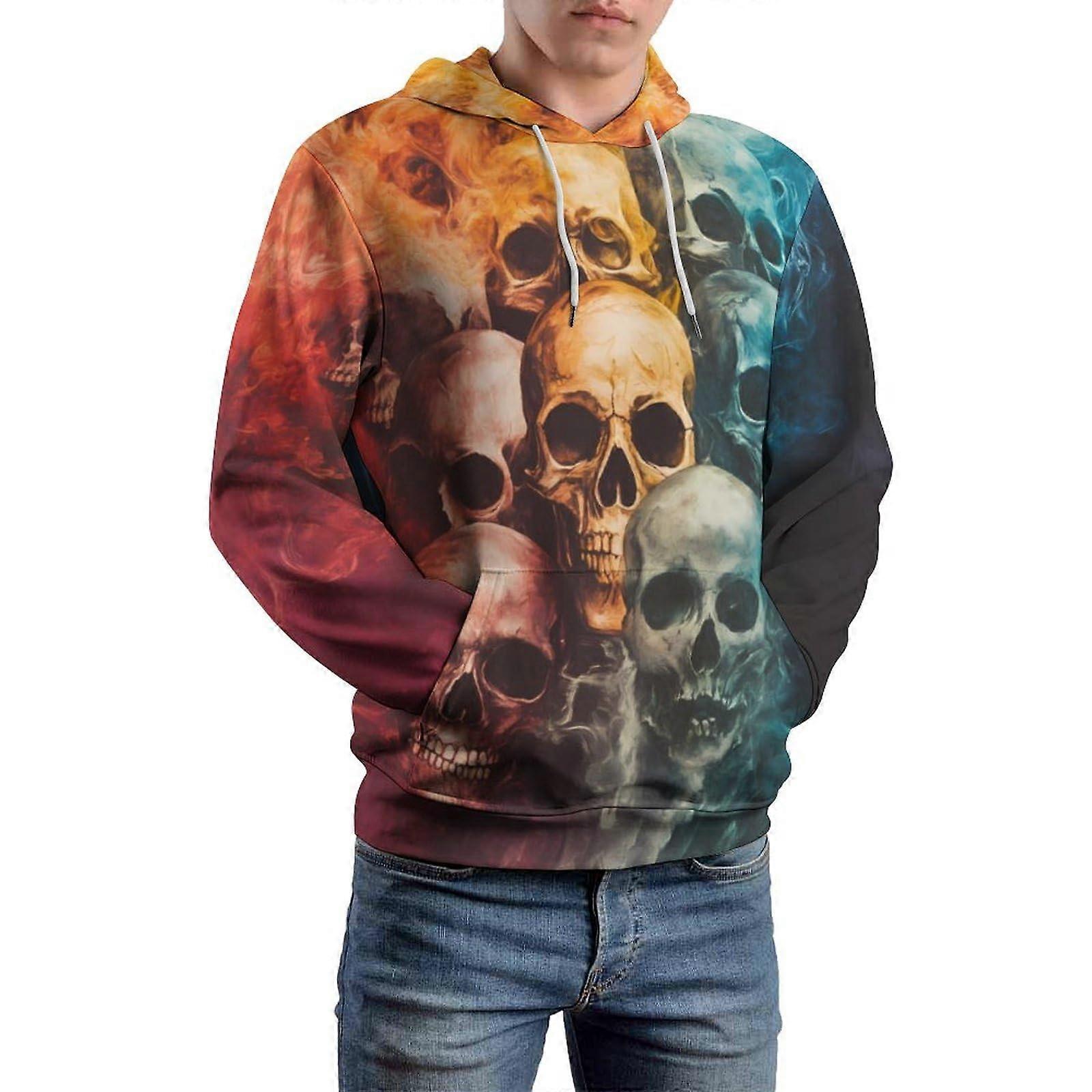 Men's Multi Color Skulls Graphic Hoodie Dynamic Art Print Pullover Edgy Casual Top