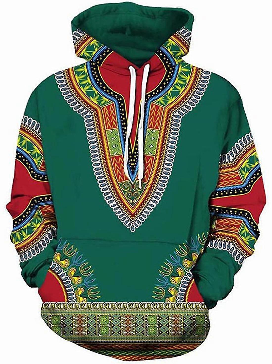 Men's Green And Red Ethnic Pattern Graphic Hoodie Colorful Print Pullover Bold Casual Top