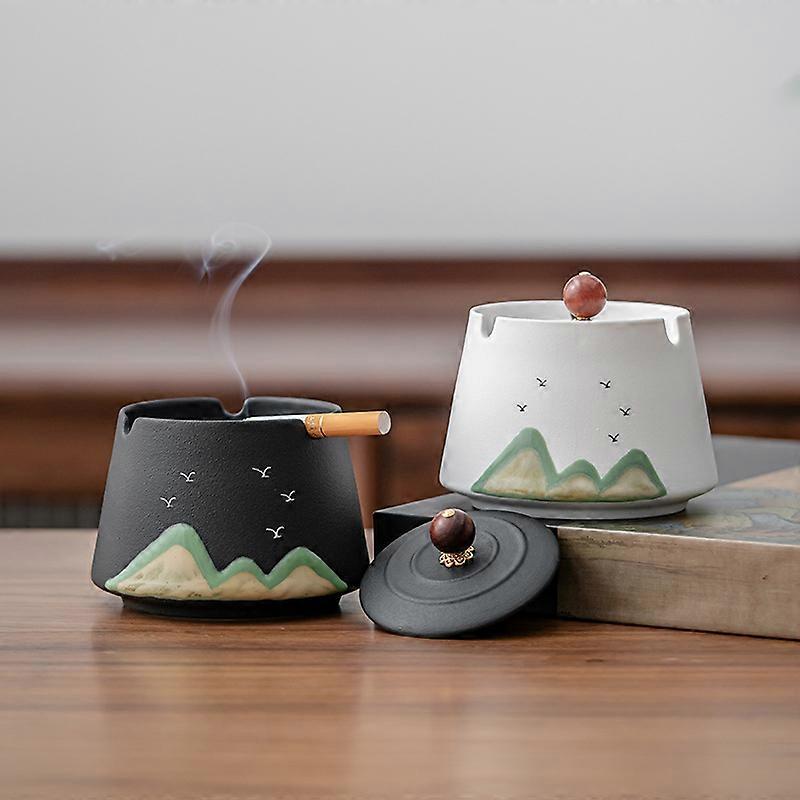 Ceramic Ashtray with Cover Office and Home Living Room Tea Table Simple and Fashionable Chinese Style Anti-fly Grey
