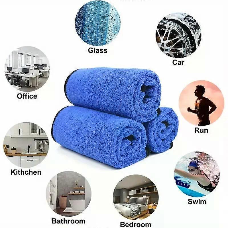 1-4pcs Microfiber Car Washing Towel Soft Quick Drying Windows Mirrors Wiping Rags Home Double Layer Cleaning Cloths 500GSM