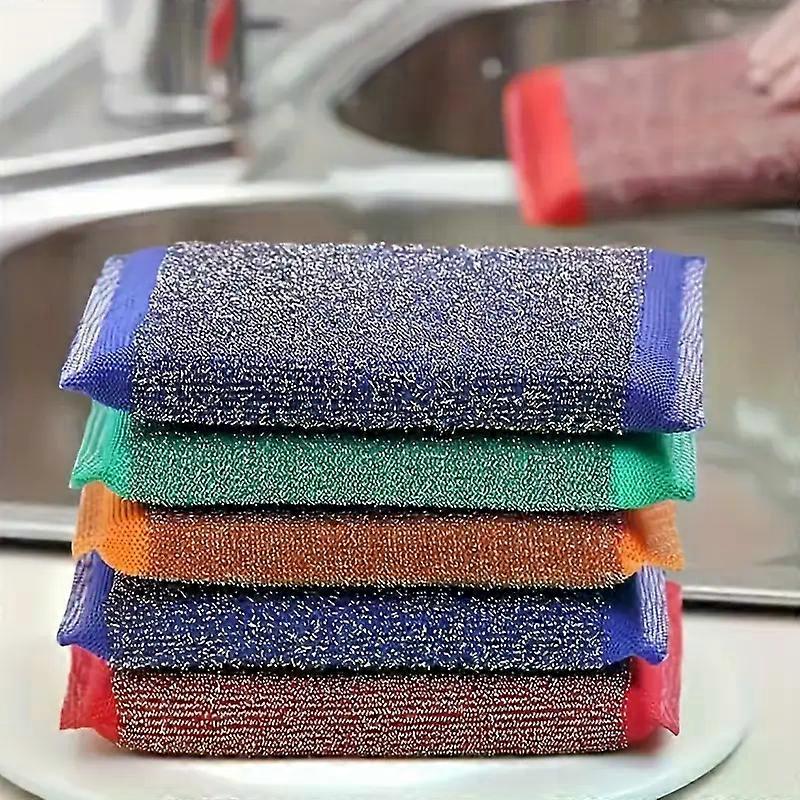 10/30pcs Steel Wire Sponge Wipe Non-stick Oil Brush Double Sided Cleaning Cloth Kitchen Dishcloth Scouring Pad Rag Cleaning Tool