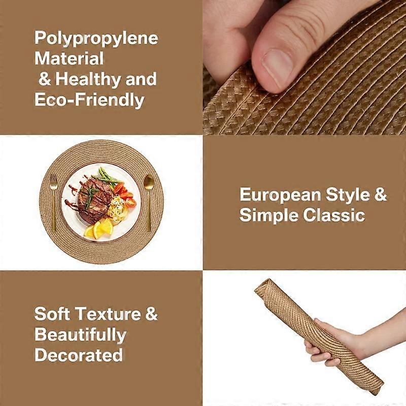 1Pcs Round Table Mat and Cup Coasters Set Woven Ramie Placemats Anti Slip Dining Placemats Non-Slip Tableware Bowl Pads Kitchen