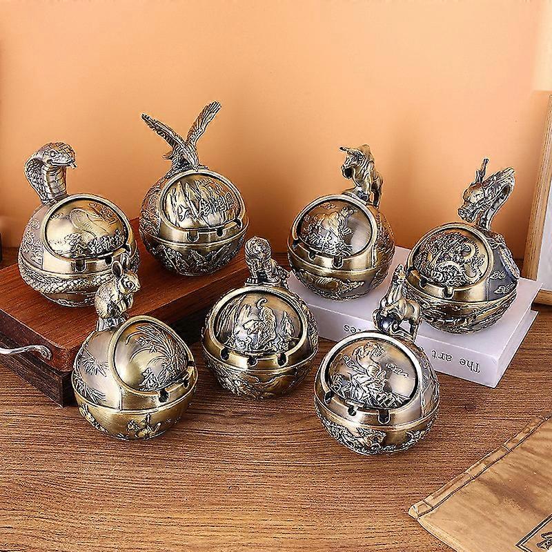 Vintage Animal Shaped Ashtray Windproof With Lid Metal Ashproof and Drop-proof Office Table Ashtray Craft Ashtray Home Ornament