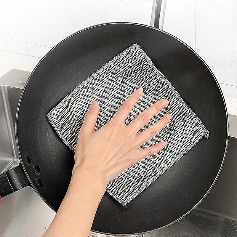 20/2pcs Thickened Steel Wire Cleaning Cloth Double -layer Non -stick Oil Iron Dishrag Kitchen Pan Pot Dishes Cloths Rags