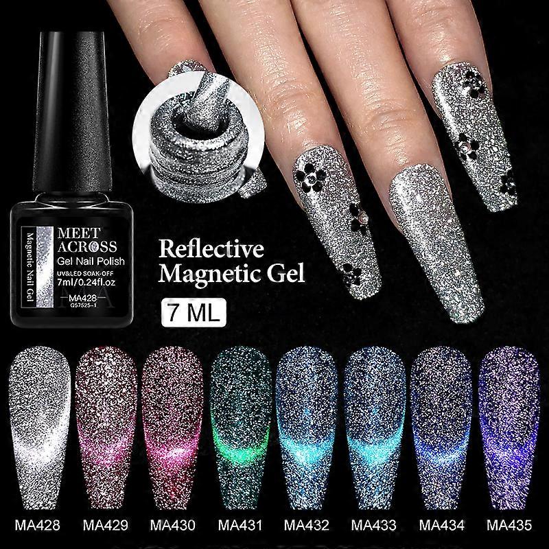 7ml Reflective Cat Magnetic Gel Nail Polish Sliver Red Blue Shinning Glitter Magnetic Nail Art UV Gel Varnish