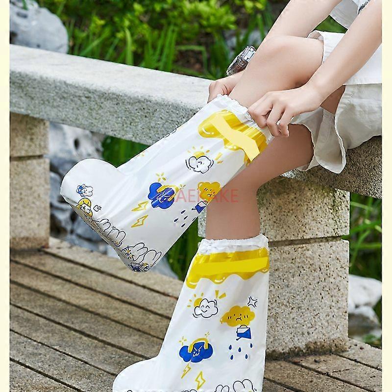 10pair Disposable children's transparent printed rainproof shoe cover, thickened and wear-resistant rain boots, long tube shoe