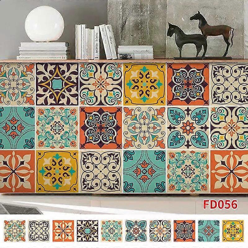10pcs/set Mandala Style Crystal Hard Tiles Ceramics Wall Sticker Kitchen Wardrobe Decor Art Mural & Stick Wall Decals