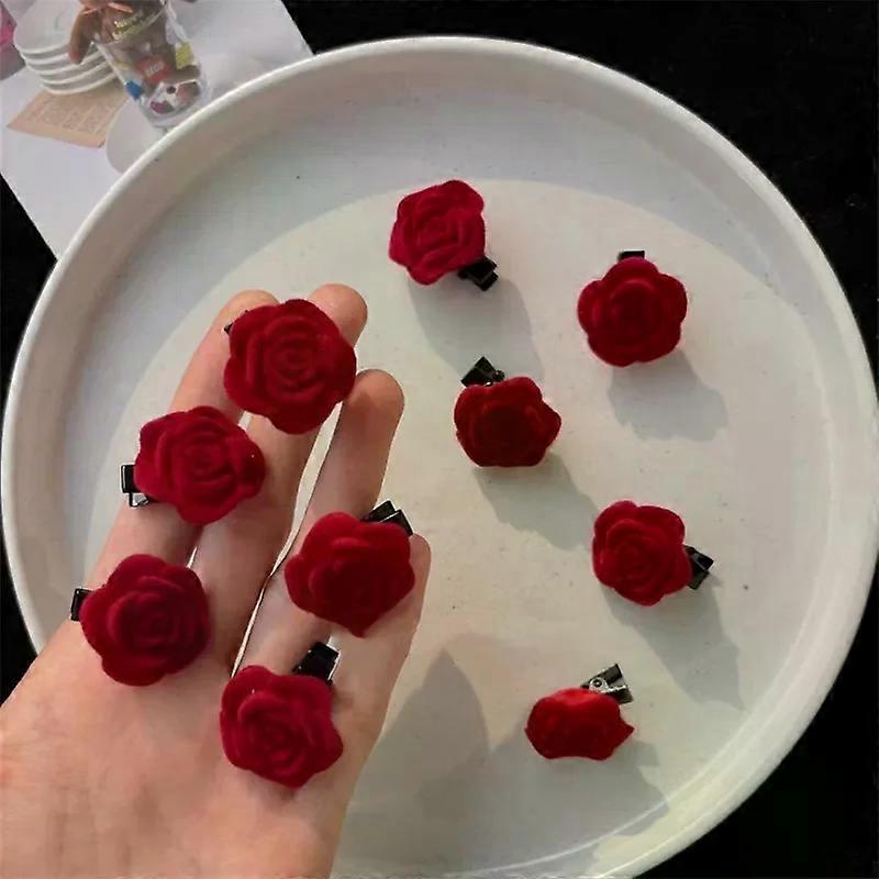 10pcs New Korean Red Velvet Rose Hair Clips For Women Flower Hairpins Girls Elegant Hair Pins Barrettes Wedding Hair Accessories