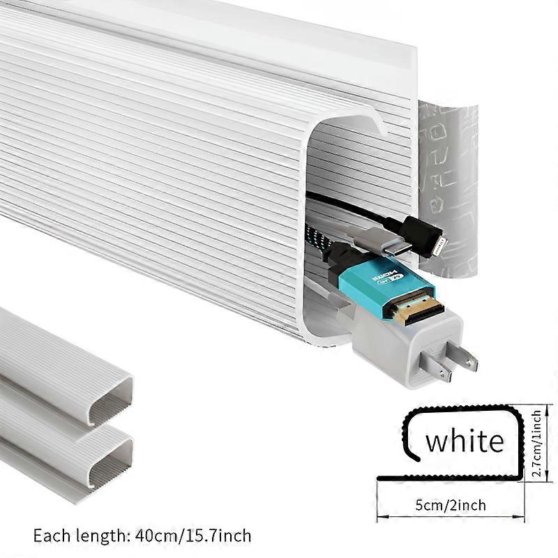 2 self-adhesive cable channels under the table, PVC invisible channel organizer, no drilling installation