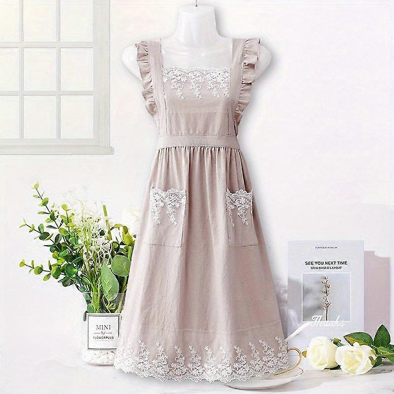 Florist Baking Apron 100% Cotton Crossback Smock with Lace Trim