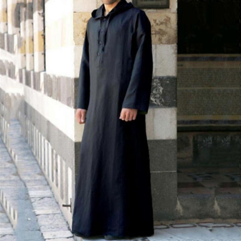 Men's Arabic-Style Simple Long Hooded Shirt | Muslim Thobe