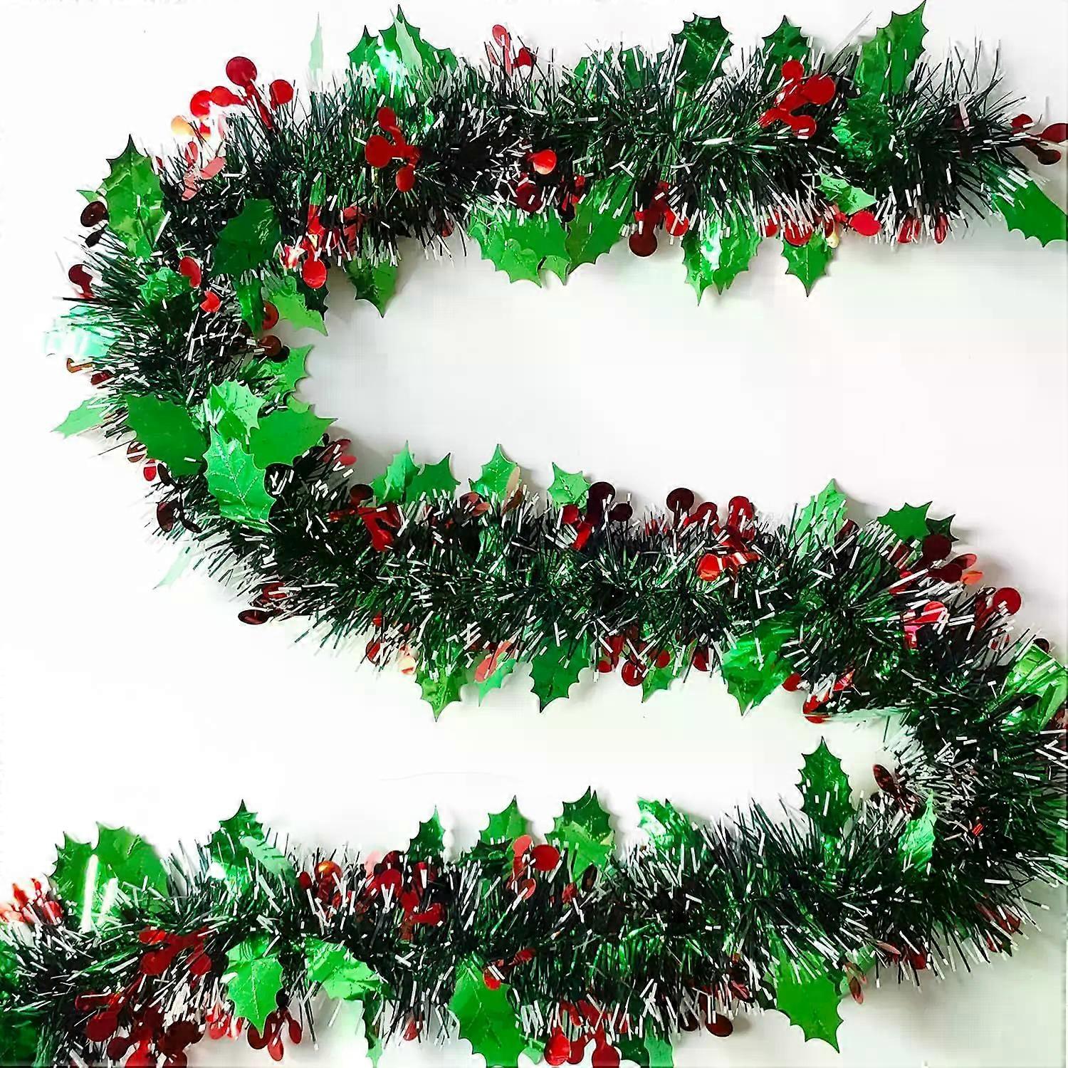 100M Christmas Green Ribbon with Red Berry Christmas Tree Garlands Hanging Colorful Ornaments Xmas Wedding New Year Decoration