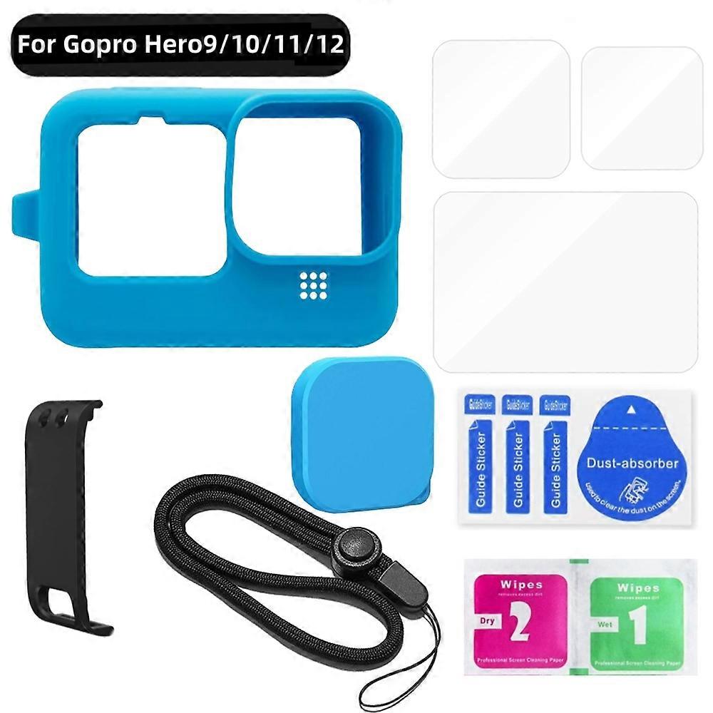 Silicone Case for GoPro Hero12 11 10 Black Tempered Glass Screen Protector Protective Film Lens Cap Cover for GoPro9 Accessories