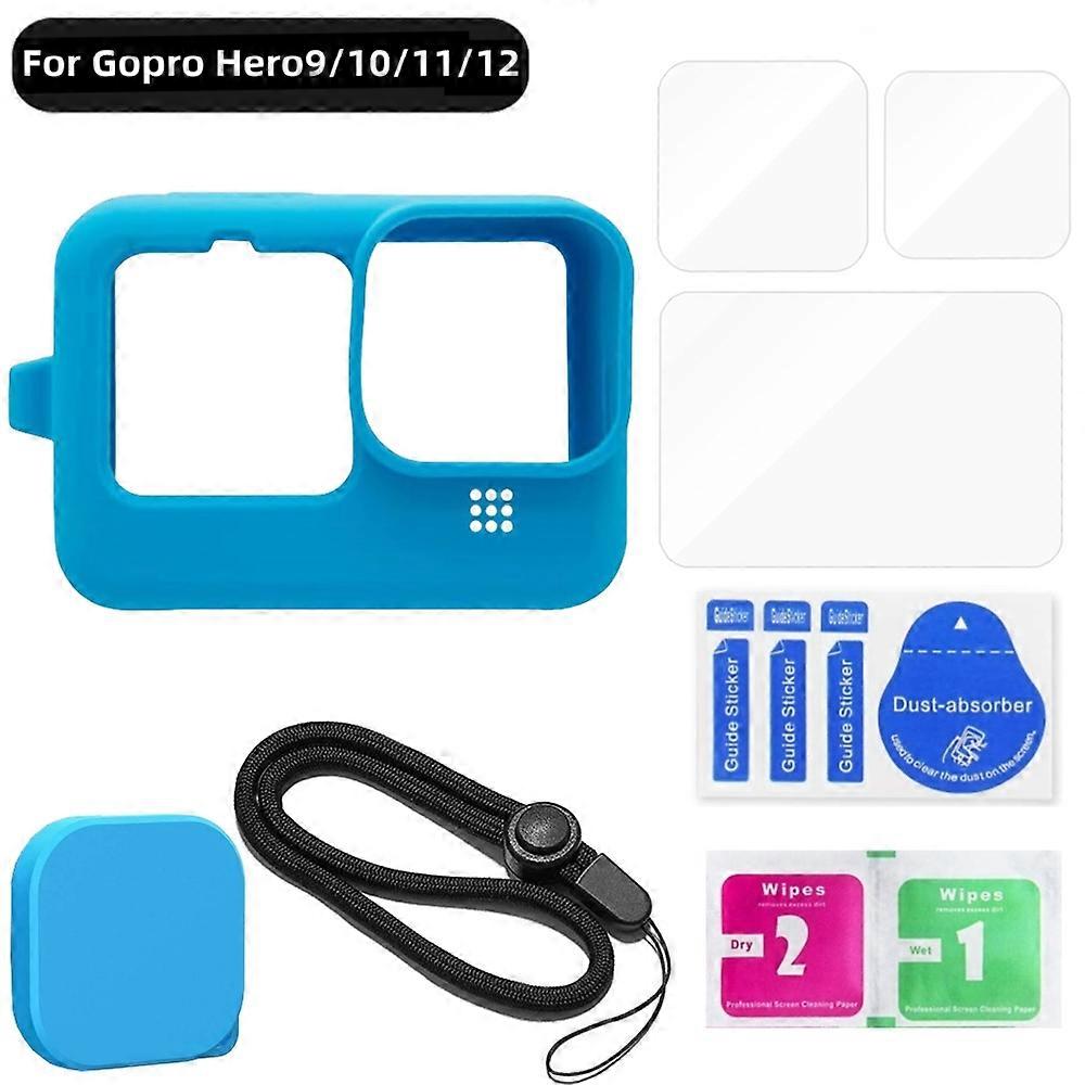 Silicone Case for GoPro Hero 12 11 10 9 Black Tempered Glass Screen Protector Protective Film Lens Cap Cover for Go Pro 11 Case
