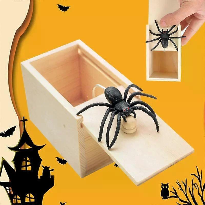 Wooden Prank Trick Practical Joke Home Office Spider Scare Prank Boxes Toy Kids Parents Friend Funny Play Game Gift Surprise Box