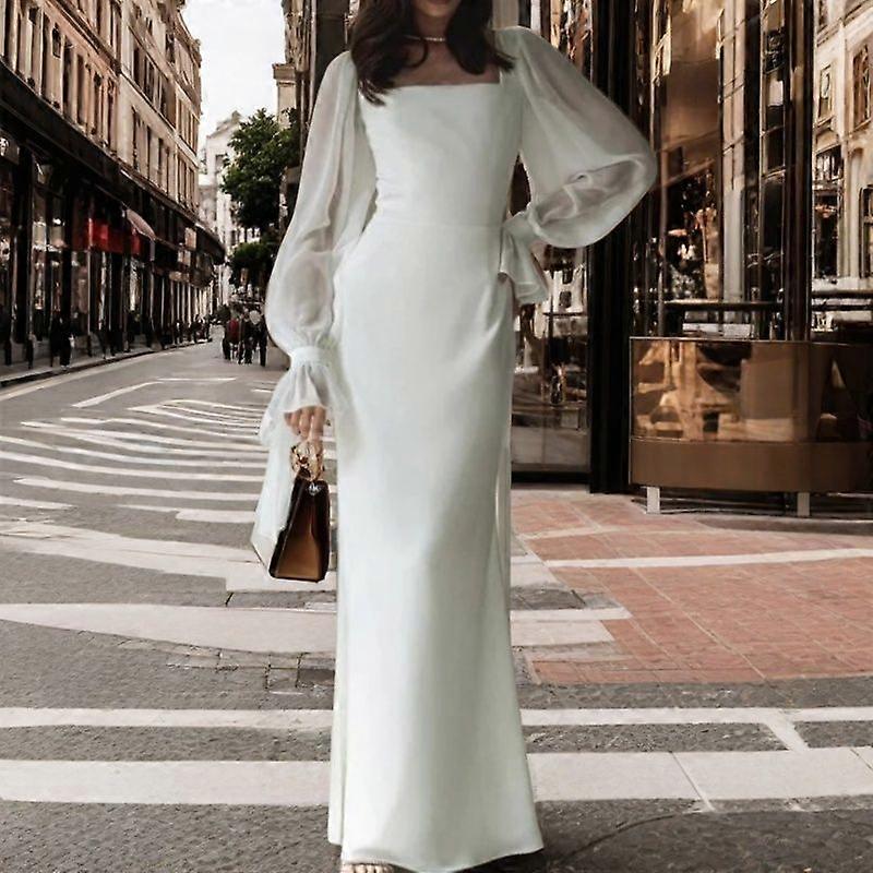 European American Women's Long Sleeve Slim Fit Mermaid Hem Wedding Gown Formal Maxi Dress for Weddings Bridal Ceremonies