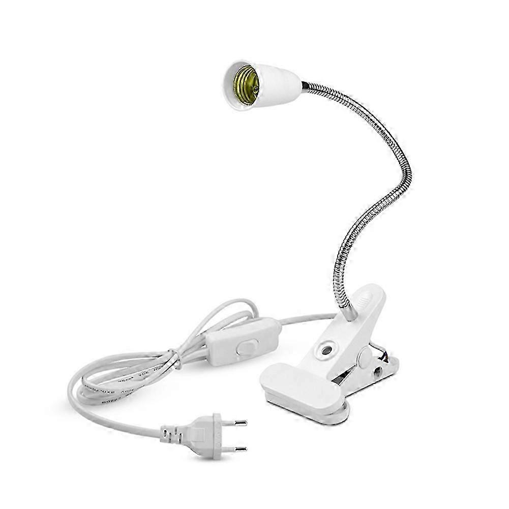 Usage Tips:High-quality Material: Crafted from durable ABS, this E27 lamp holder is designed to withstand daily use while offering a sleek, modern look. The robust construction ensures longevity and reliability, making it a practical addition to any setting.Versatile Design: Featuring a flexible clip holder, this lamp base can be easily attached to various surfaces such as desks, bedside tables, and more. The adjustable design allows you to position the light exactly where you need it, enhancing functionality and user experience.Convenient Features: Equipped with a push button switch, this lamp holder allows for easy operation, enabling you to turn your lamp on and off with just a simple press. The inclusion of an EU power adapter makes it readily usable in multiple countries, adding to its versatility.Safe and Reliable: Engineered to meet high safety standards, this E27 lamp holder with no high-concerned chemicals ensures a safe lighting solution for your home or office. The reliable design prevents overheating and electrical hazards, offering peace of mind.Portable and Lightweight: The compact and lightweight design of this lamp holder makes it easy to move and reposition as needed. Whether you're rearranging your workspace or need a change in your lighting setup, this lamp holder provides flexibility and ease of use.Description:Transform any standard EU outlet into a versatile E27 bulb socket with our EU plug to E27 socket adapter. This convenient adapter features a built-in clip for easy attachment and a control On/Off switch for simple operation. Adjust both the angle and height of the bulb to suit your lighting needs. Lightweight and easy to install, this adapter is perfect for both home and office use.Features:Direct connection of light bulbs to EU plugOn/Off switch for easy controlAdjustable bulb lig