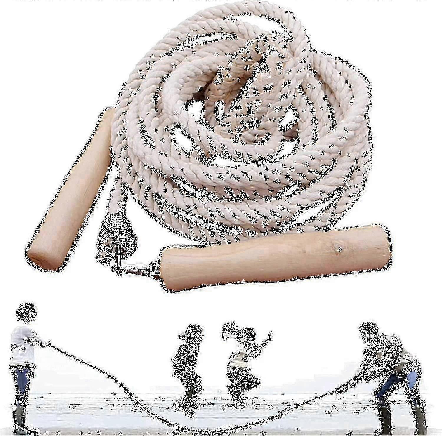 5M Long Jump Rope for Multiplayer Skipping - Wooden Handle Team Group Double Dutch Rope