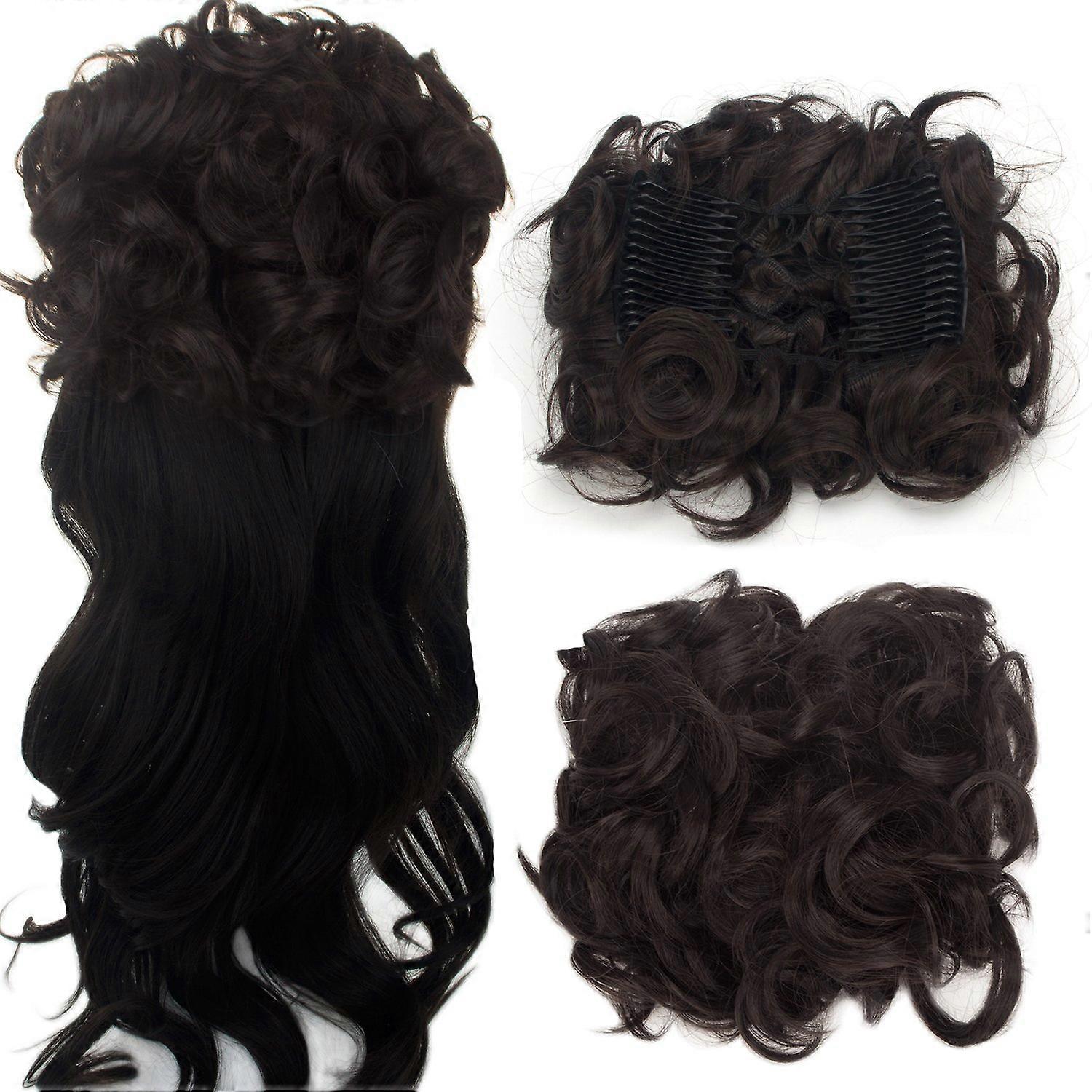 Short messy curly bun hairpiece designed to create a natural chignon or ponytail accent for formal events or everyday wear. Made from synthetic fiber, this drawstring bun uses an elastic tie, two light comb clips, and an integrated scrunchie base to secure comfortably and adjust to different bun sizes. The piece adds full, bouncy curls and instant volume in seconds. Key benefits Fast styling: transforms your look quickly without cutting or styling your own hair. Secure fit: two comb clips and an elastic drawstring provide a stable hold for allday wear. Adjustable size: stretchable design fits most bun and ponytail sizes and can be worn low, mid, or on the head. Natural curly appearance: short, messy curls add volume and texture for updos, chignons, or ponytail accents. Easy maintenance: synthetic fiber requires infrequent washing and simple care steps to keep curls looking fresh. Features and specifications Material: Acrylonitrile Butadiene Styrene Copolymer (ABS) components with synthetic hair fiber. Clips: contains two comb clips arranged for balanced grip. Weight: 95 g approximately 3.35 oz. Size: natural length 7.08 inches, natural width 6.30 inches; overall rectangular dimension about 7.08 x 6.30 inches. Attachment: elastic drawstring with scrunchiestyle base and light comb clips for added security. How to attach 1. Slide one comb clip into one side of your secured hair. 2. Stretch the piece around your hair to the desired position. 3. Slide in the other comb clip and tighten the drawstring for a snug fit. Note: The stretch comb clips and the curly hairpiece are designed to work together for stable wear. Care instructions Wash only when needed, typically after 4 to 6 wears. Gently detangle with fingers or a pick comb, working from the ends upward before washing. Wash in cold water with a small amount of mild shampoo. Rinse thoroughly in warm water from to bottom. Do not twist, wring, or squeeze. Allow to air dry flat or on a wig stand. Do not use curling irons, blow dryers, or other heat styling tools. Practical uses Prom or wedding updo: add volume and polished curls for formal hairstyles. Everyday styling: quick messy bun or ponytail for work or casual outings. Photo shoots and events: create consistent, cameraready curls with minimal effort. This hair bun piece is a convenient, adjustable option for anyone wanting fuller curly updos without extensive styling.