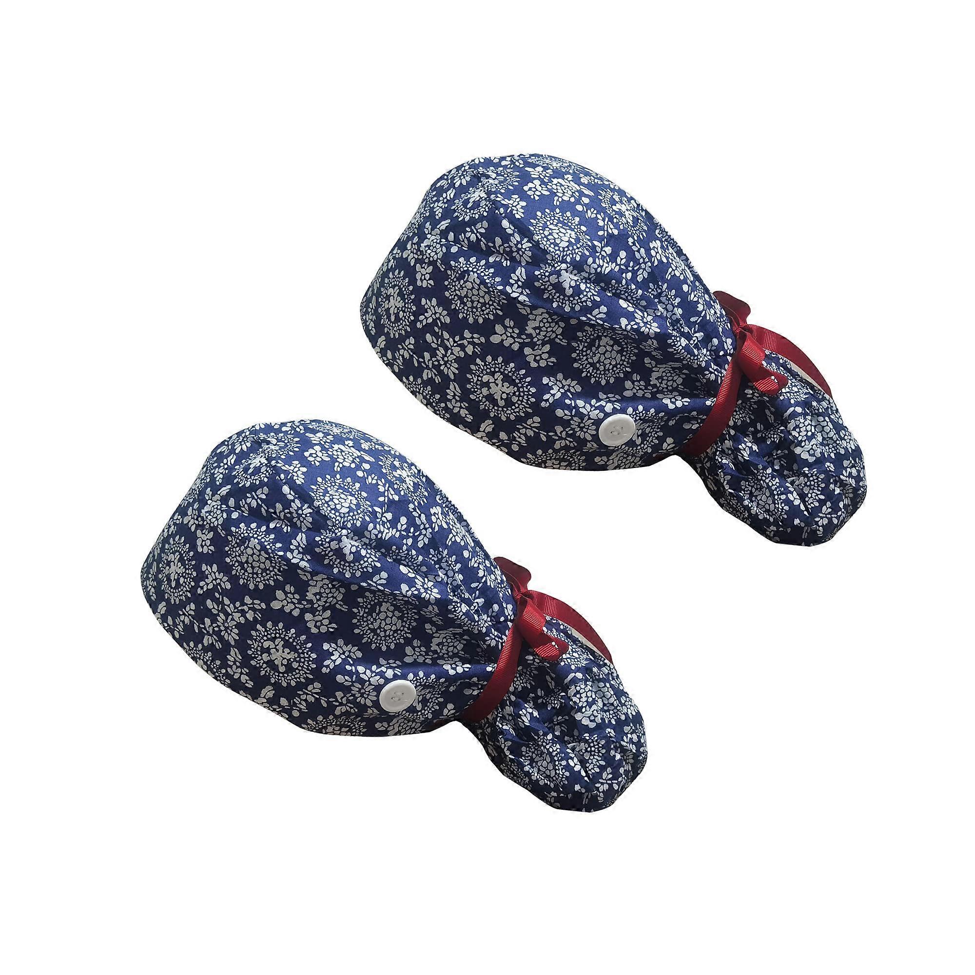 2 Pack Adjustable Working Cap with Button for Long Hair Women Ponytail Scrub Hat
