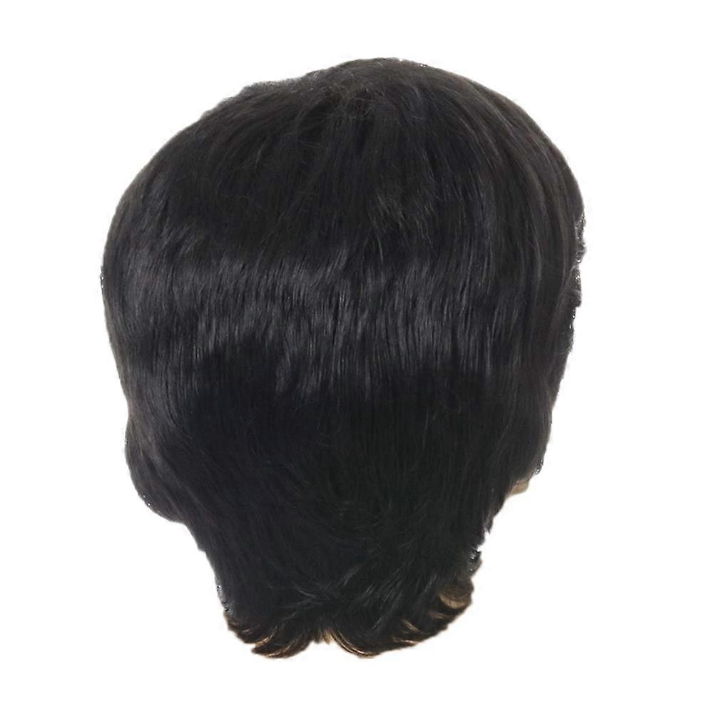 Men's Short Hair Wig Natural Black Straight Synthetic Wig for Male Easy Install Overhead Replacement Design