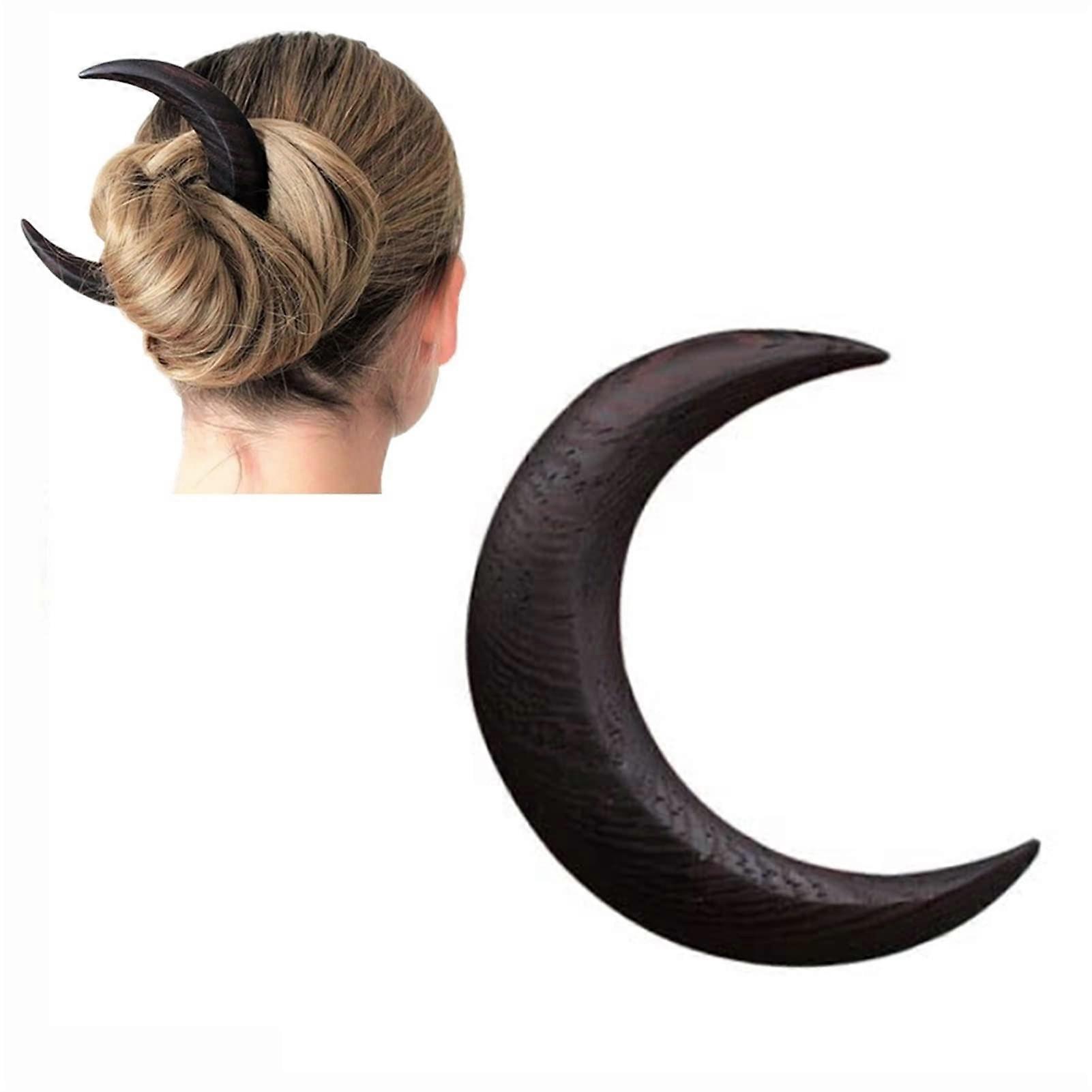 Crescent Moon Hair Fork Hand Carved Wooden Hair Stick for Women Ethnic Style Black 4.4 Inch