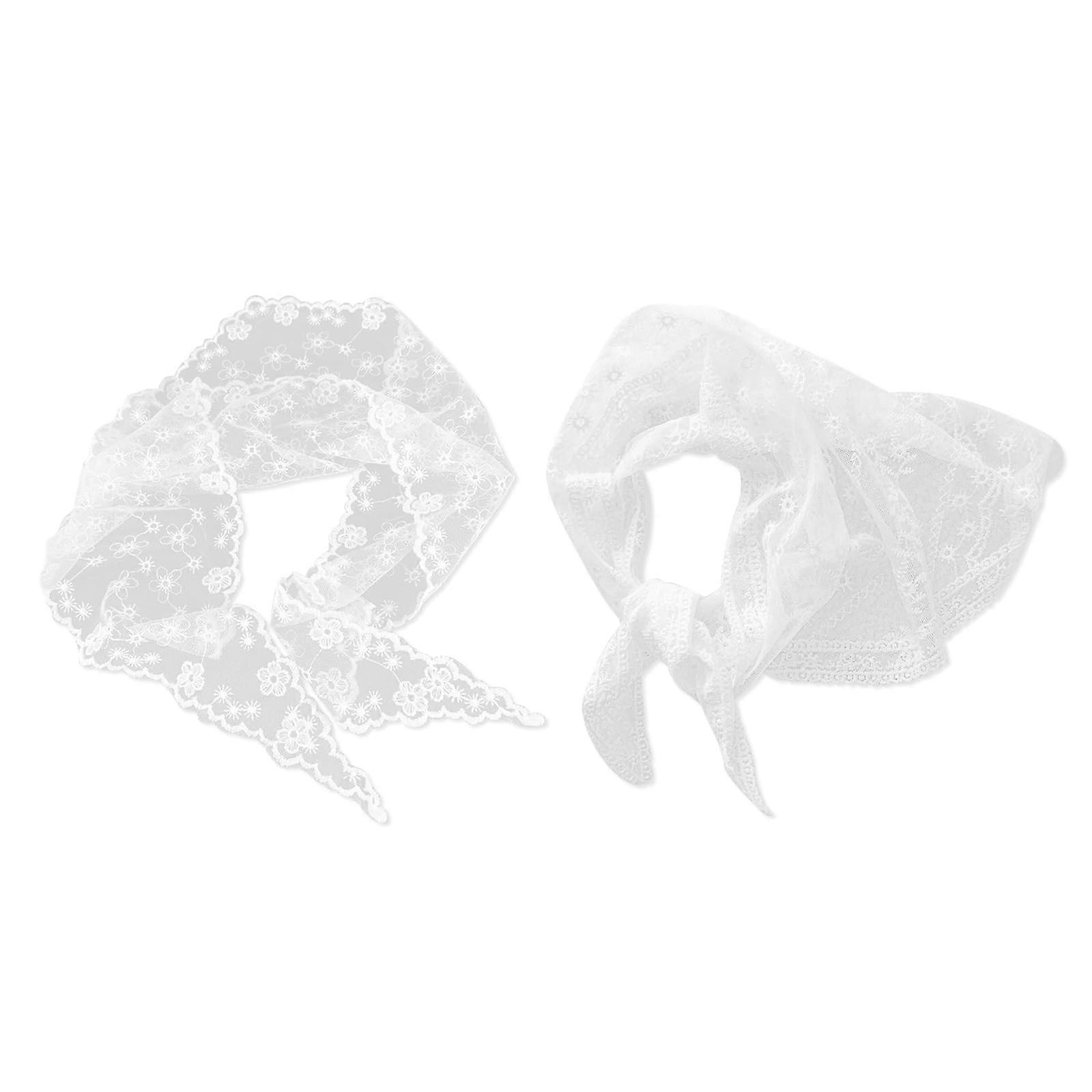 Women Lace Triangle Head Scarf 2 Pack, Floral Gingham Bandana with Romantic Lace Patchwork, Pastoral French Style