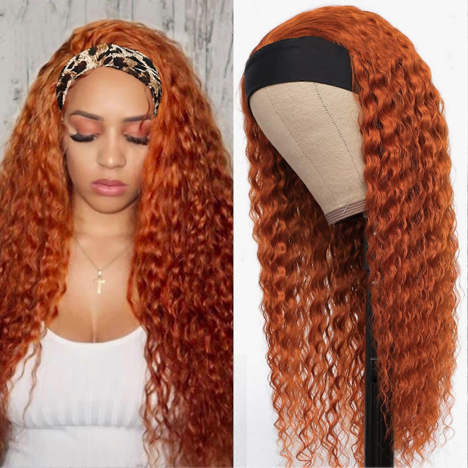 Headband Wig Human Hair 22 Inch Ginger Deep Wave Remy 150% Density Curly Wig for Black Women