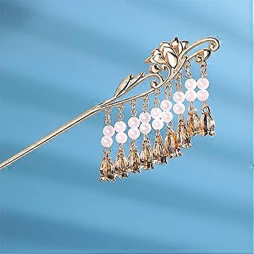 Vintage Pearl Tassel Hair Stick with Rhinestone Flower for Secure Chinese Chignon Hairstyle