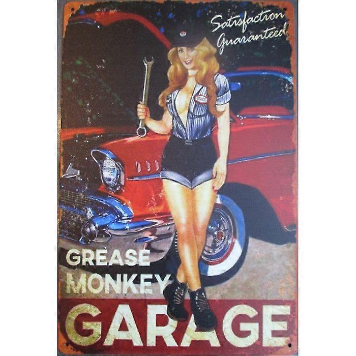 Vintage Metal Sign – 'Grease Monkey Garage' Pin-up Style 30x20cm