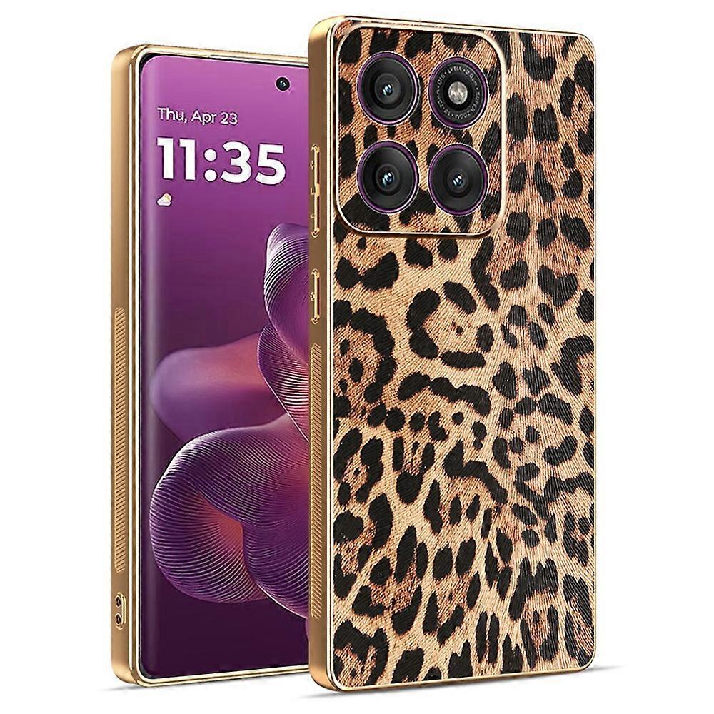 Compatible For Motorola Edge 60 Pro 5G Case Leopard Print PU Leather Coated PC + TPU Electroplating Phone Cover