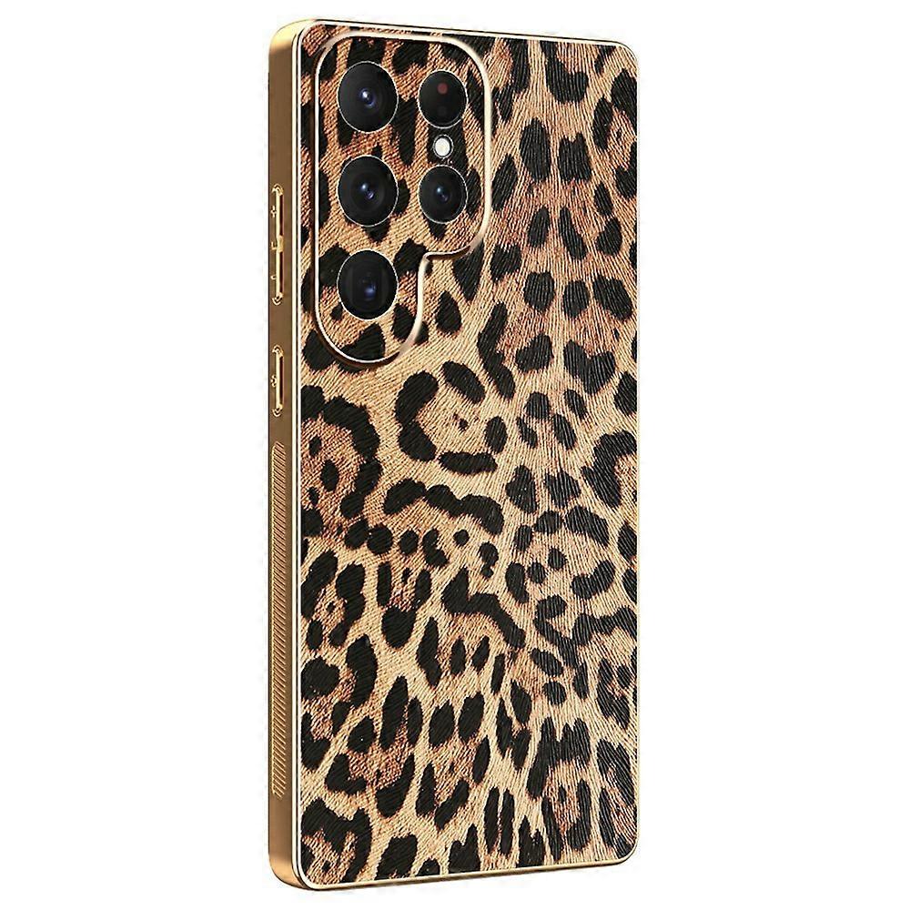 Compatible For Samsung Galaxy S23 Ultra Case Leopard Print PU Leather Coated PC + TPU Electroplating Phone Cover