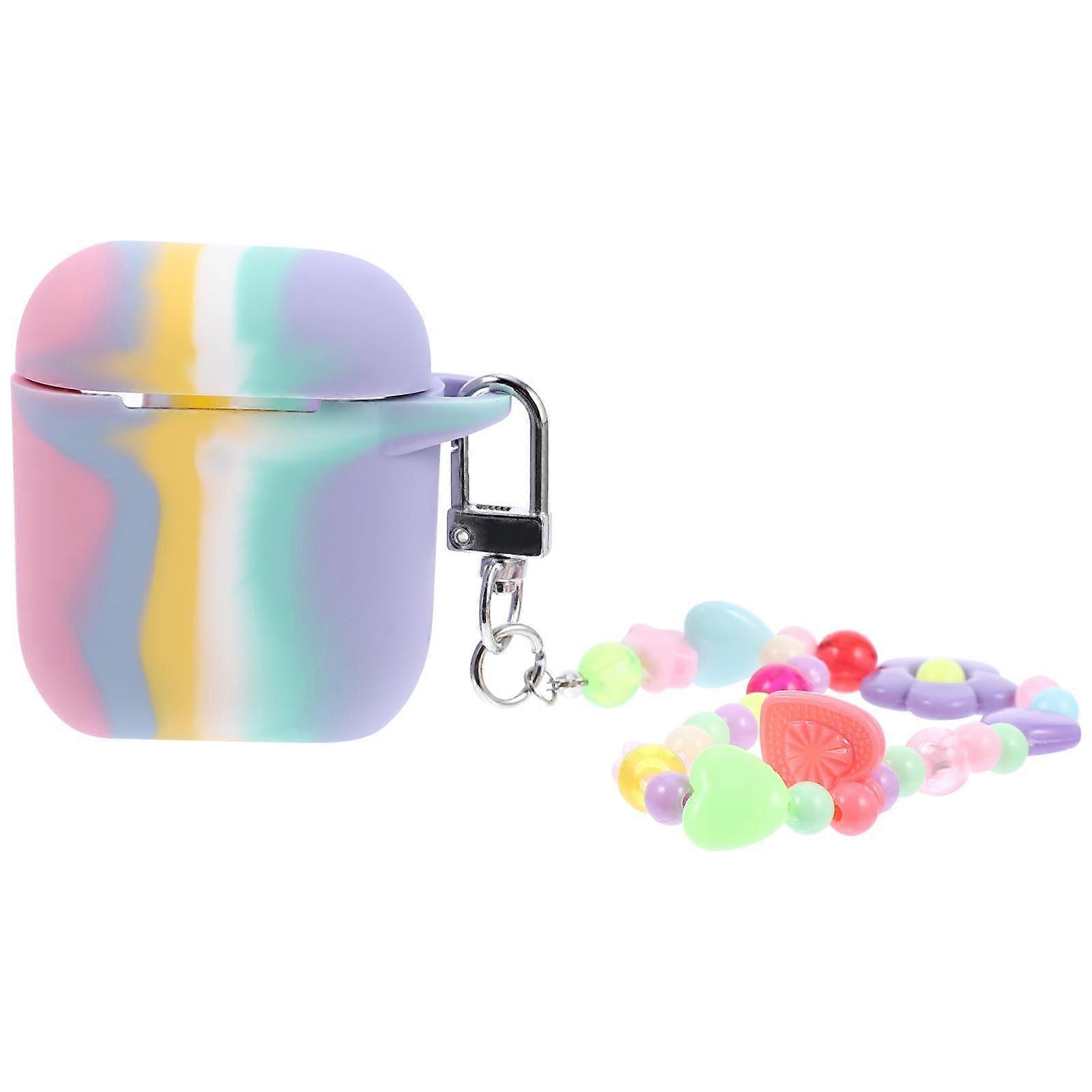 Wireless Earphone Cover Storage 2Pcs Rainbow Silicone Headphone Case with Chain