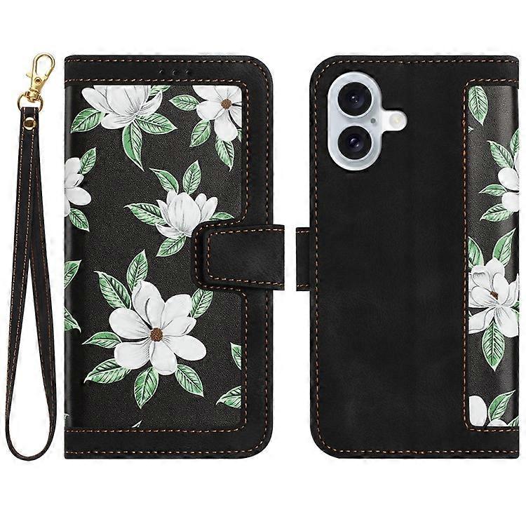 Compatible For iPhone 17 Case PU Leather Floral Phone Cover with Card Slots / Wrist Strap