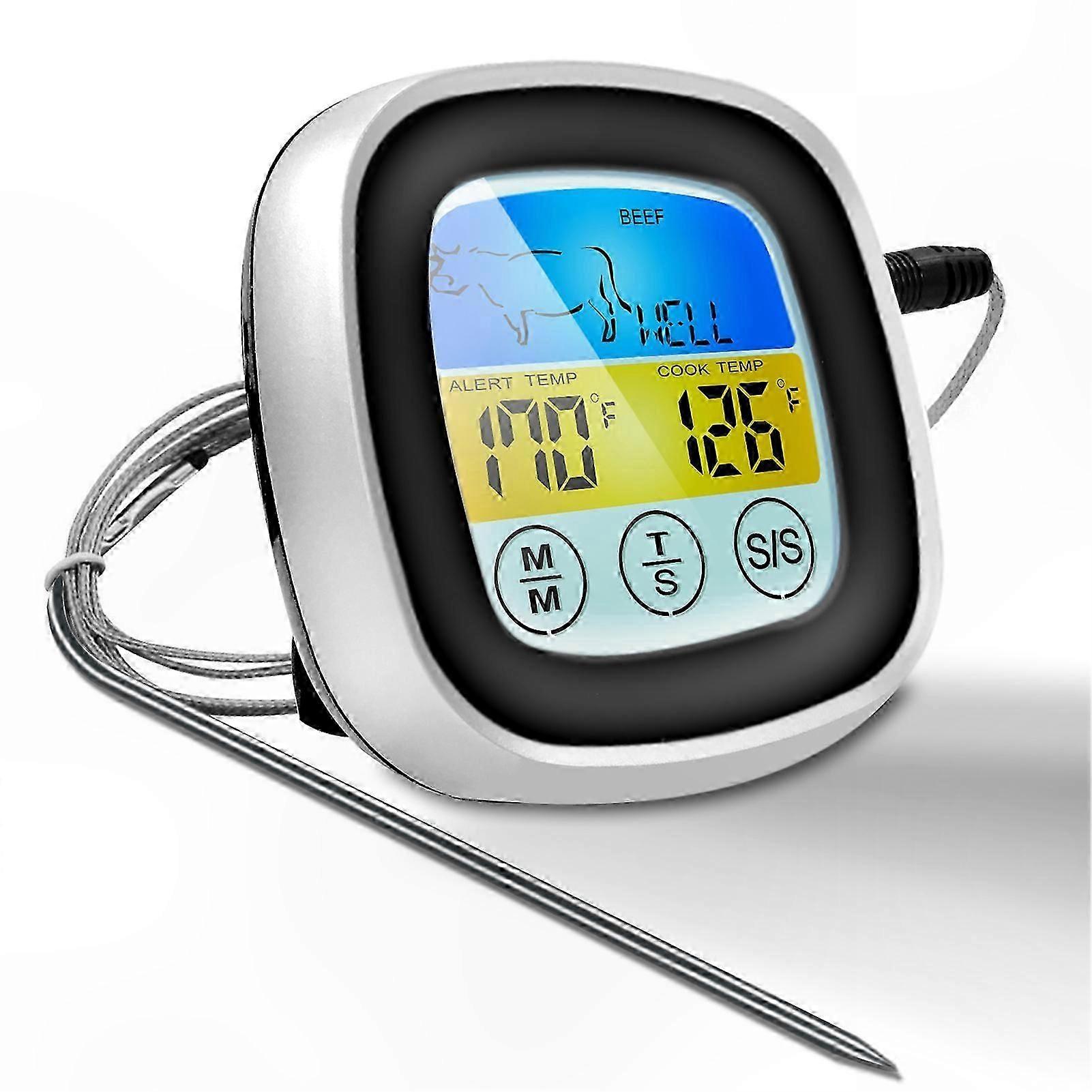 Multifunctional Digital Meat Thermometer with Touchscreen, Stainless Steel Probe, Accurate Temperature Reading, Upgraded Color Display for Cooking