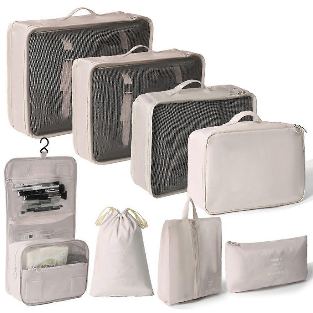 【Comprehensive 8-Piece Set】This versatile travel organizer set includes various sizes of clothing storage bags, underwear pouch, shoe bag, and toiletry bag, catering to all your packing needs for clothes, cosmetics, and toiletries. 【Durable Water-Resistant Material】Crafted from double-sided twill fabric, these organizers are long-lasting, wrinkle-resistant, and effectively protect your belongings from moisture. 【Space-Saving Foldable Design】Easily foldable after use, these organizers take up minimal space in your suitcase or backpack, maximizing your packing efficiency. 【Versatile for Multiple Occasions】Ideal for short trips, business travel, camping, and various other scenarios, enhancing your travel organization and efficiency. 【Clear Compartments for Easy Organization】Thoughtfully designed internal structure helps users quickly locate items, eliminating the hassle of rummaging through luggage. Specifications: Large Clothing Bag: 42 x 32 x 12 cm Medium Clothing Bag: 34 x 28 x 12 cm Small Clothing Bag: 32 x 23 x 12 cm Underwear Bag: 28 x 20 x 12 cm Shoe Bag: 34 x 20 cm Drawstring Bag: 36 x 27 cm Flat Pouch: 27 x 16 cm Toiletry Bag: 41 x 24 x 8 cm Material: Double-sided twill fabric Features: Water-resistant, wrinkle-resistant, foldable